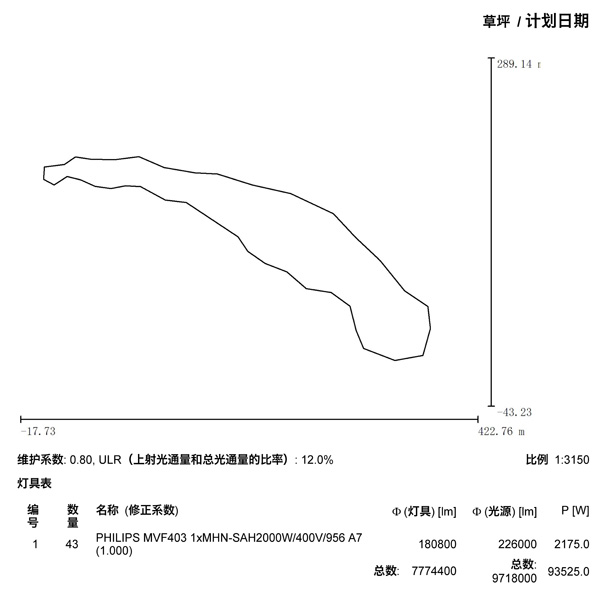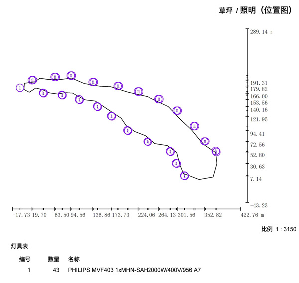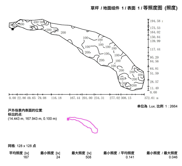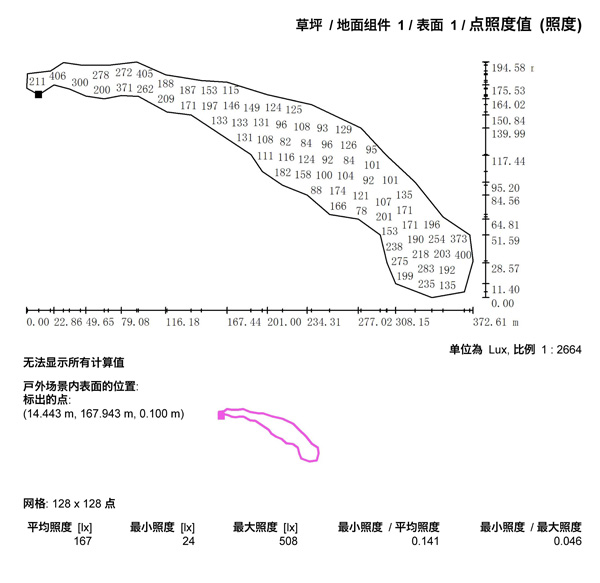 在所有體育相關(guān)的照明標準中,只有IESNA RP-6-01《體育運動照明標準》中明確提出了對高爾夫球場的水平照度要求。下面介紹本案高爾夫球場照度計算。