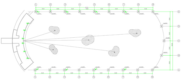 高爾夫球場(chǎng)不僅滿足地面水平照度和垂直照度,同時(shí)還要滿足空中拋物線區(qū)域的垂直照度要求,只要以上功能性照明照度值達(dá)到標(biāo)準(zhǔn),打球者才能對(duì)自己擊出的球在有效的燈光照射范圍中順著球體飛行軌跡,觀測(cè)到球體飛出去到掉落的全過(guò)程。
