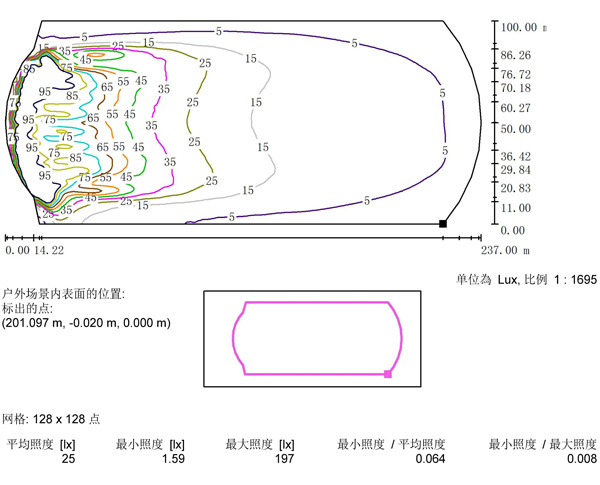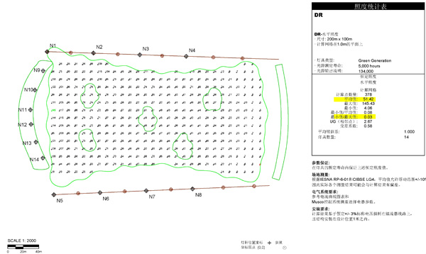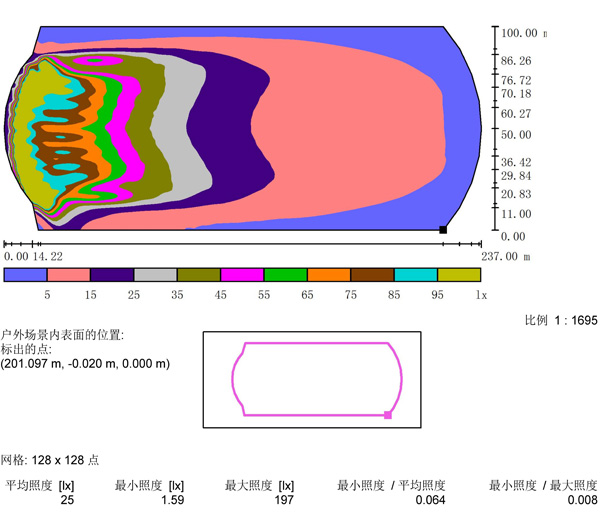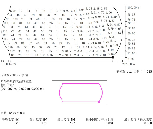 球場(chǎng)表面照度/數(shù)值圖表(E,水平)