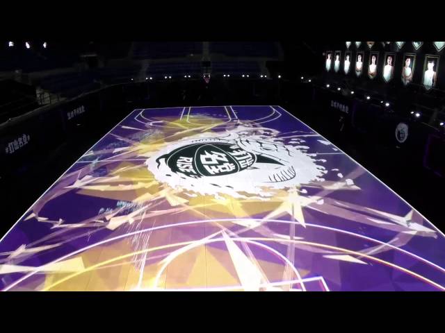 乍看上去,這個籃球場有標(biāo)準(zhǔn)的木地板,如果你仔細(xì)觀察,你就會發(fā)現(xiàn)所有的地板都是由LED面板拼湊起來。木板實際上只是LED顯示的圖形。由于屏幕放置在地上,它們能做的事情非??捎^。比如可以用示蹤線跟蹤球員,當(dāng)球員投2分或者3分球的時候,地板上的標(biāo)志可以發(fā)生變化,在投球得分之后,地面可以顯示一些非??岬膭赢嬓Ч鹊?。