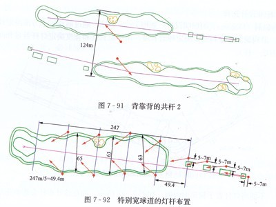當該距離超過110米時,最好使用兩根獨立的燈桿分別給球道提供照明。(見圖7-91)