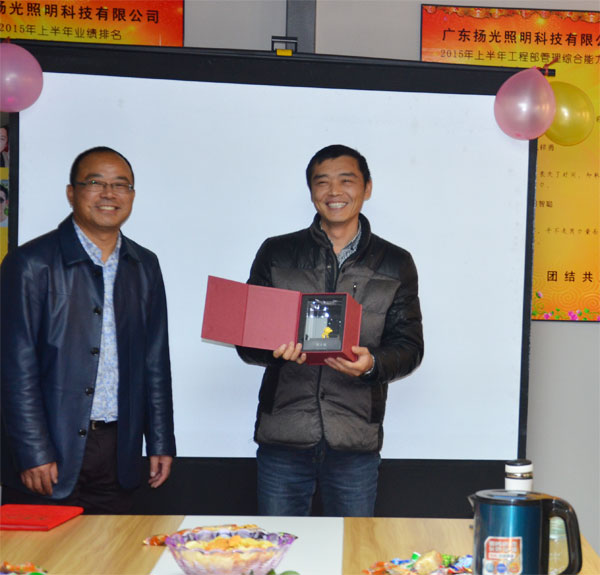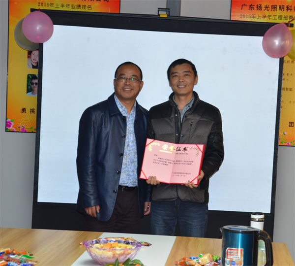 揚(yáng)光照明每年都要為跨進(jìn)10年工齡的老員工舉行表彰儀式,并授予榮譽(yù)獎(jiǎng)?wù)隆D憧?,今年就有一位,他,就是我們公司的工程部總監(jiān)——郭總。