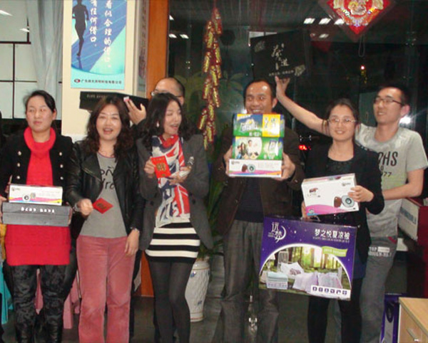 快樂會議中,有員工層抽獎活動,管理層抽獎活動以及唱歌,小品等多個節(jié)目,員工層和管理層的抽獎活動獎品豐富,有遠夢夏被、高級茶葉、高級茶具、以及現(xiàn)金大獎等,活動現(xiàn)場受到大家的聲聲喝彩!同時,我們也為本月過生日的同事送上了鮮花以及全體員工的祝福,讓整個活動更顯溫馨!