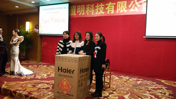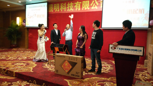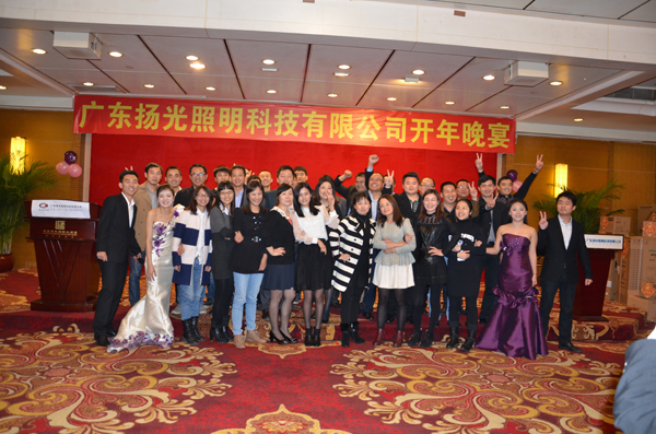 喜悅伴著汗水,成功伴著艱辛,遺憾激勵(lì)奮斗,我們不知不覺(jué)地走進(jìn)了2015年。在元宵佳節(jié)來(lái)臨之際,揚(yáng)光照明開(kāi)年晚宴在東莞會(huì)展酒店隆重舉行,揚(yáng)光照明總經(jīng)理李總,全國(guó)多個(gè)分公司負(fù)責(zé)人、全體員工及員工家屬共同出席。 美味的晚宴中伙伴們與家屬共同觀看了揚(yáng)光照明給大家?guī)?lái)的節(jié)目,節(jié)目?jī)?nèi)容精彩紛呈。