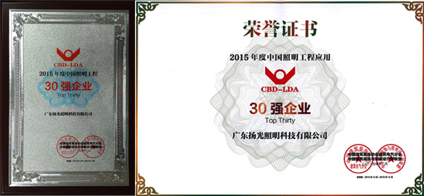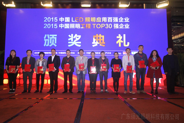 12月3日晚,由中國建筑裝飾協(xié)會建筑電氣委員會、中國建筑裝飾與照明設計師聯(lián)盟主辦的2015年度“中國照明工程30強企業(yè)”頒獎典禮在廣州隆重召開。廣東揚光照明科技有限公司在眾多候選企業(yè)中脫穎而出,成功獲得2015年度“中國照明工程30強企業(yè)”稱號。