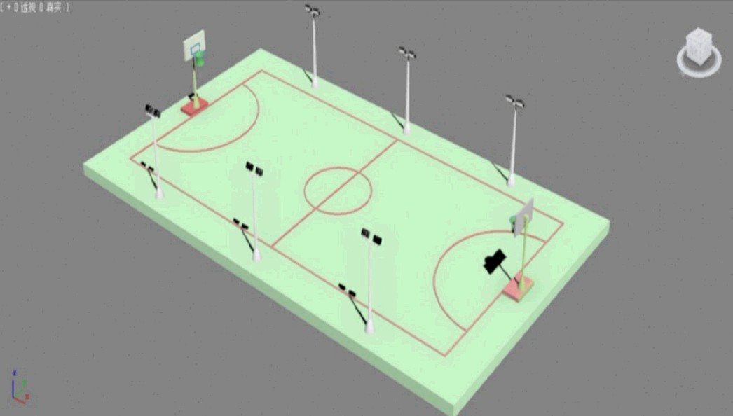 6套燈具分布均勻于兩側(cè),可保證整個(gè)籃球場(chǎng)比賽區(qū)域的