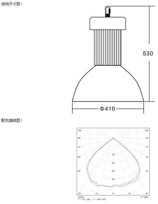 2、利用二次光學(xué)技術(shù),燈具出光率達(dá)到90%以上;