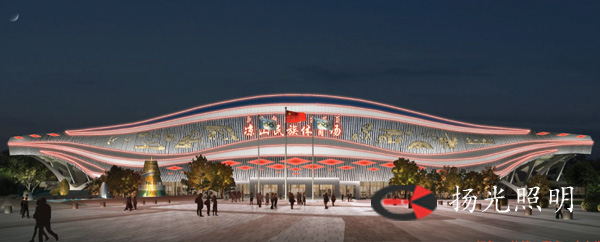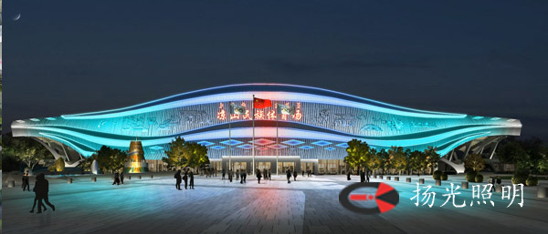 網(wǎng)球中心和綜合訓(xùn)練館根據(jù)原建筑圓弧和矩形的造形,打造以花為主題的整體形象,用燈光展現(xiàn)建筑如索瑪花般的優(yōu)美結(jié)構(gòu),展現(xiàn)出美好,和諧的光環(huán)境。